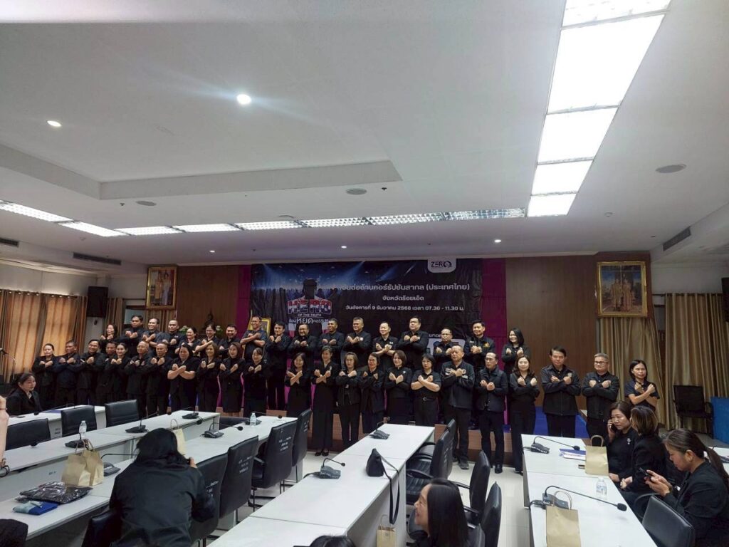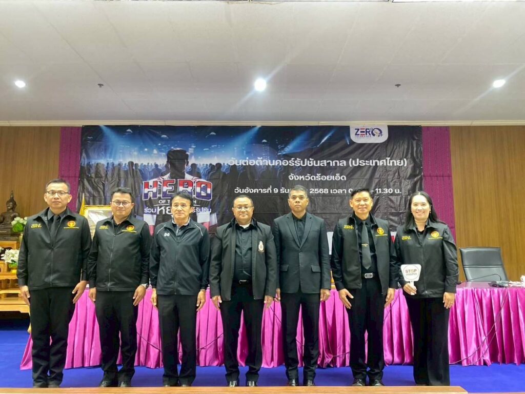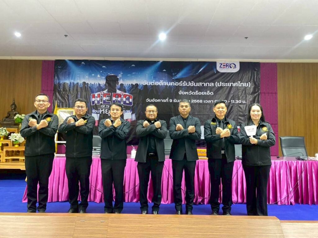 สำนักตรวจเงินแผ่นดินจังหวัดร้อยเอ็ดเข้าร่วมงานวันต่อต้านคอร์รัปชันสากล (ประเทศไทย) จังหวัดร้อยเอ็ด ประจำปี พ.ศ. 2568 ภายใต้แนวคิด HeroOfTheTruthร่วมหยุดคอร์รัปชัน เพื่อร่วมแสดงพลังครั้งสำคัญ ในวันต่อต้านคอร์รัปชันสากลและร่วมกันสร้างประวัติศาสตร์หน้าใหม่ ประกาศก้องให้โลกได้รับรู้ว่า “ประเทศไทยไม่ทนต่อการทุจริต” โดยมีนายชัชวาลย์ เบญจสิริวงศ์ ผู้ว่าราชการจังหวัดร้อยเอ็ด เป็นประธานในพิธี ณ ห้องประชุมพระมหาเจดีย์ชัยมงคล ชั้น 5 ศาลากลางจังหวัดร้อยเอ็ด