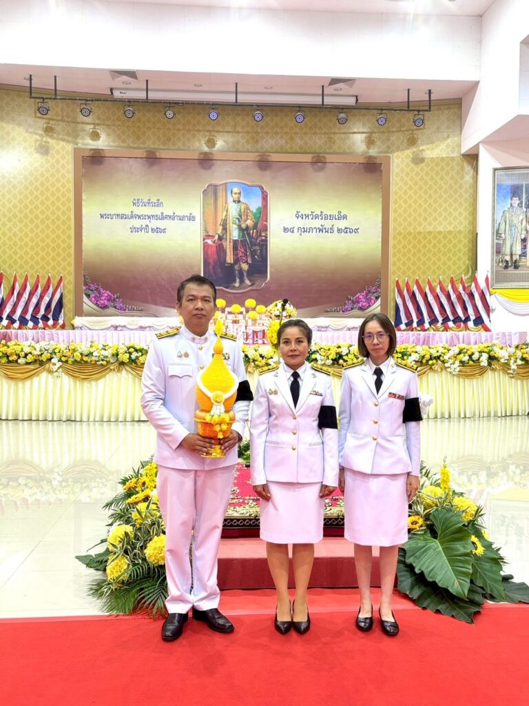 นางสาวปวีณา มูลสาร ผู้อำนวยการสำนักตรวจเงินแผ่นดินจังหวัดร้อยเอ็ดเข้าร่วมพิธีางพานพุ่มดอกไม้ถวายราชสักการะ เนื่องในวันคล้ายวันพระราชสมภพของ พระบาทสมเด็จพระพุทธเลิศหล้านภาลัย ประจำปี 2569 โดยนายชัชวาลย์ เบญจสิริวงศ์ ผู้ว่าราชการจังหวัดร้อยเอ็ด เป็นประธานในพิธี พร้อมรองผู้ว่าราชการจังหวัด ข้าราชการ ตุลาการ อัยการ ศาล ทหาร ตำรวจ และหน่วยงานต่าง ๆ เข้าร่วมพิธีอย่างพร้อมเพรียง